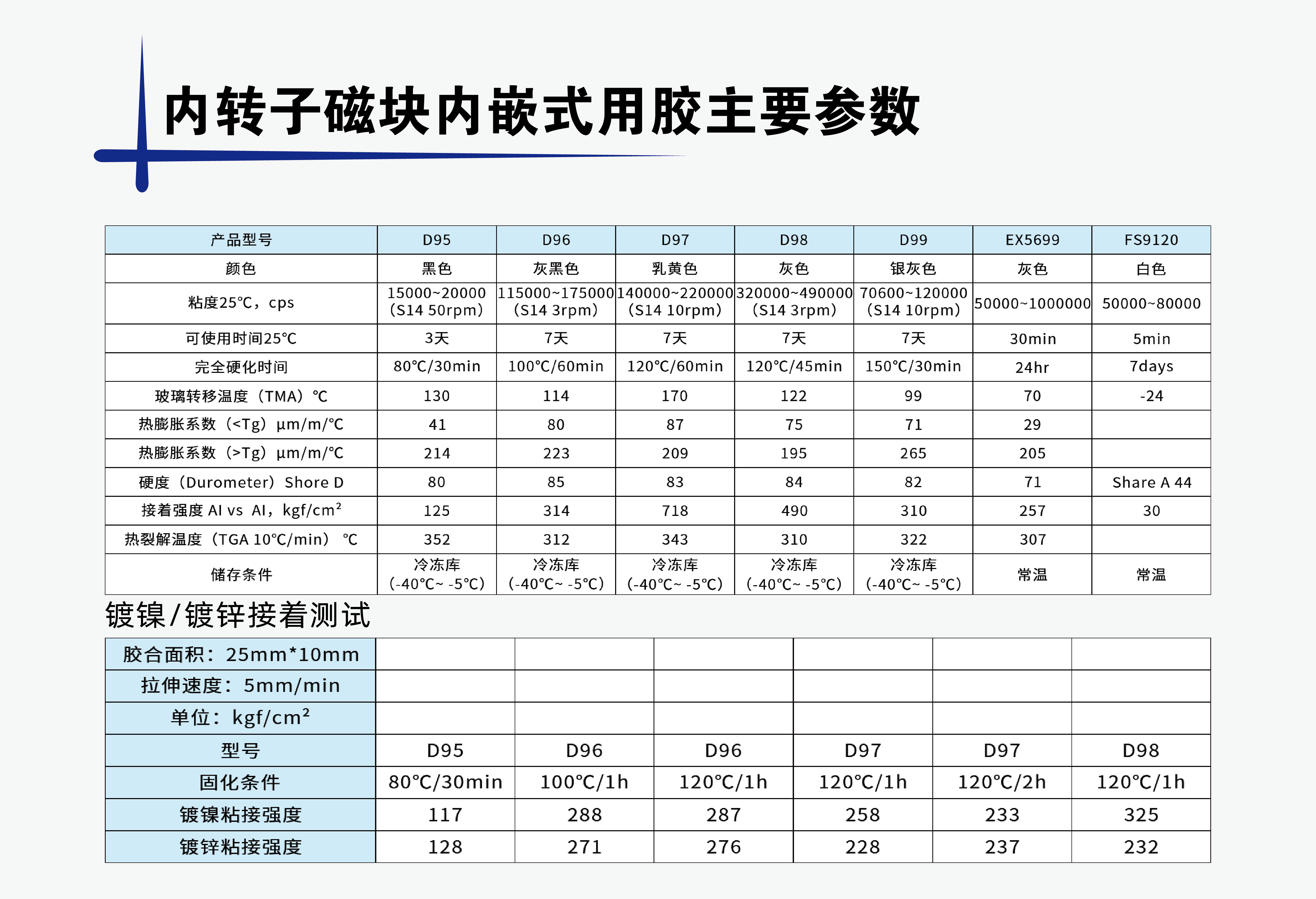 D99为能在130至180oC硬化的单液型环氧树脂。本树脂是提供极佳的接着强度,冲击强度和拉力。