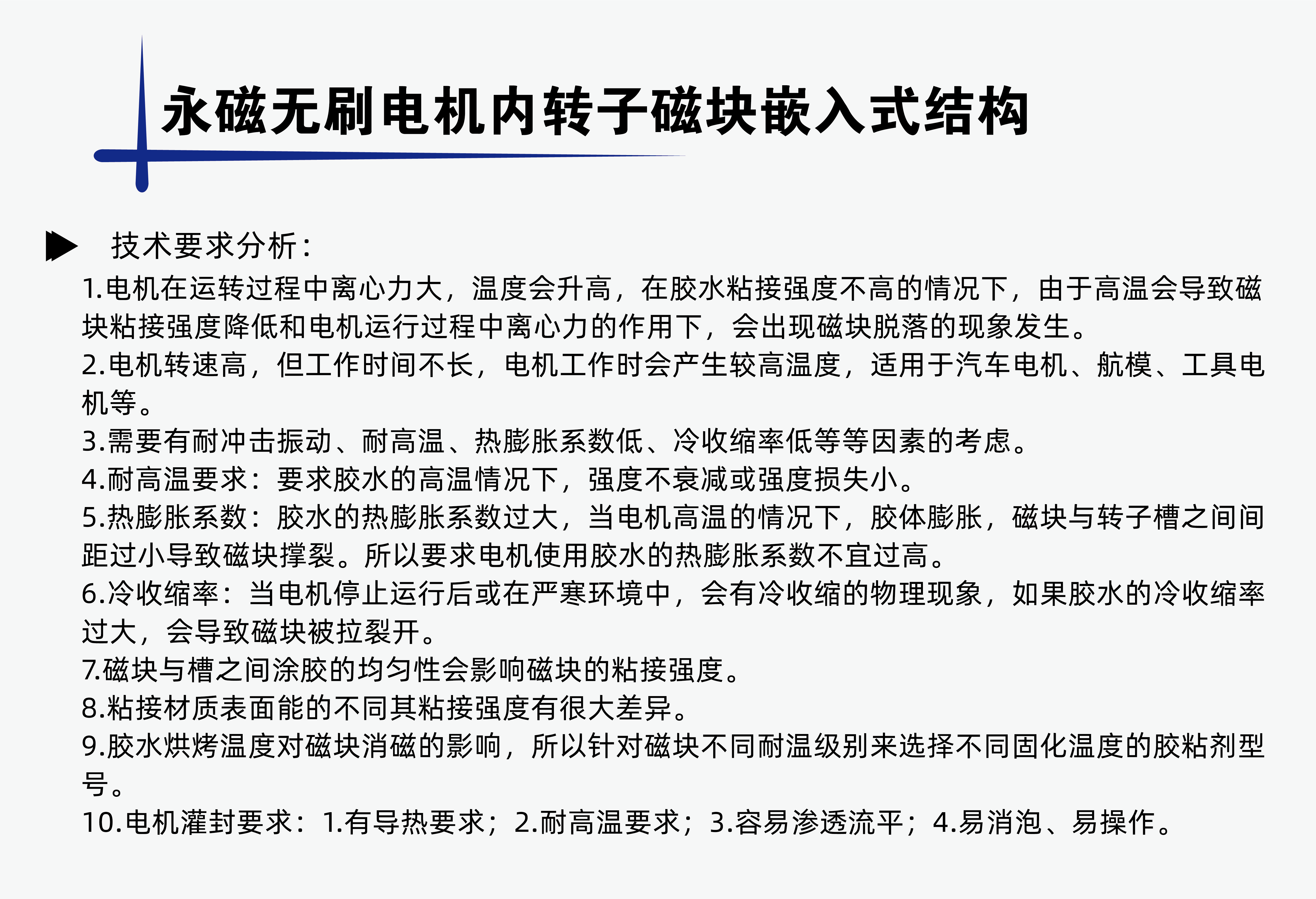 本产品具有良好的耐疲劳性和抗龟裂的特性,可应用在结构性零件接着。本树脂硬化后具有良好的接着力,对油脂化学药品和溶剂都有良好的抵抗力。